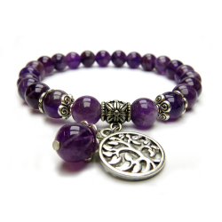 Amethyst Baum des Lebens Armband 8mmDieses elastische Perlenarmband ist mit einem Lebensbaumanhänger versehen. Der Stein ist sehr kraftvoll und schützend, mit einer sehr spirituellen Schwingung, er gibt Einblick und bietet dir Frieden. Durch die reinigende Wirkung des Amethysts können Sie sich und den Raum reinigen.