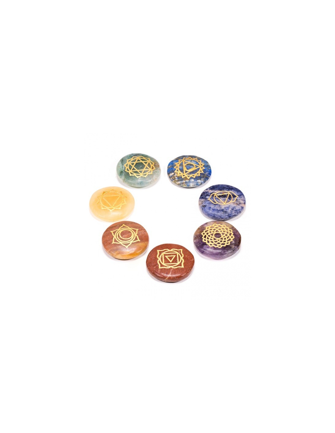 Set 7 Chakra Symbolen Mineralsteinen rund 16438