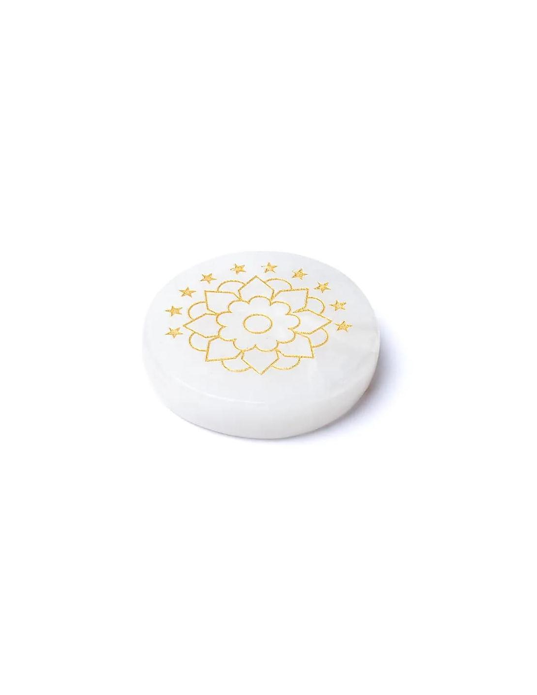 Diese wunderschön gravierte Bergkristallscheibe, verziert mit dem Lotus-Symbol, einem kraftvollen Symbol für Reinheit, Transformation und spirituelles Wachstum, bringt Klarheit, Reinheit und Ausgeglichenheit in Ihr Leben. Legen Sie diese besondere Scheibe auf Ihren Altar, verwenden Sie sie während der Meditation oder tragen Sie sie als Talisman bei sich, um die Energie der Liebe und des spirituellen Wachstums den ganzen Tag über zu spüren.