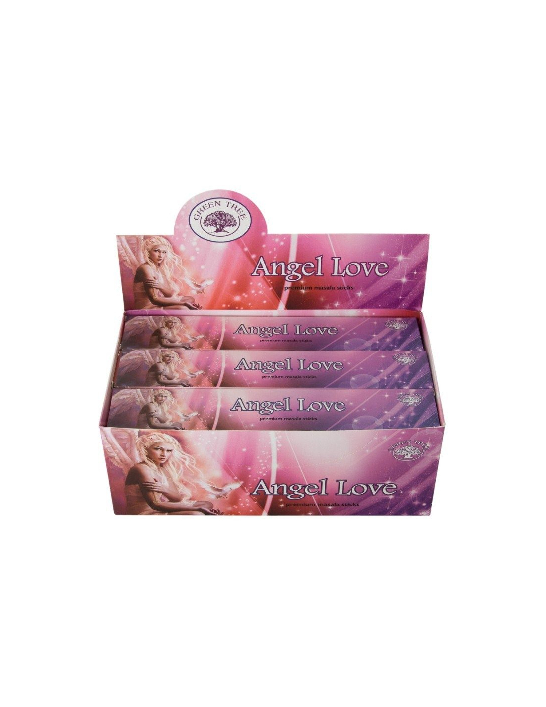 Die besten Kräuter, Blumen-Extrakte, exotischen Ölen und anderen natürlichen Inhaltsstoffen. Diese sind sorgfältig ausgewählt und gekonnt gemischt für ihren positiven Einfluss, wie Kräuter, Harze und indischen Gewürzen (Masala). Angel Love ist eine weitere aromatische Schaffung der Marke Greentree