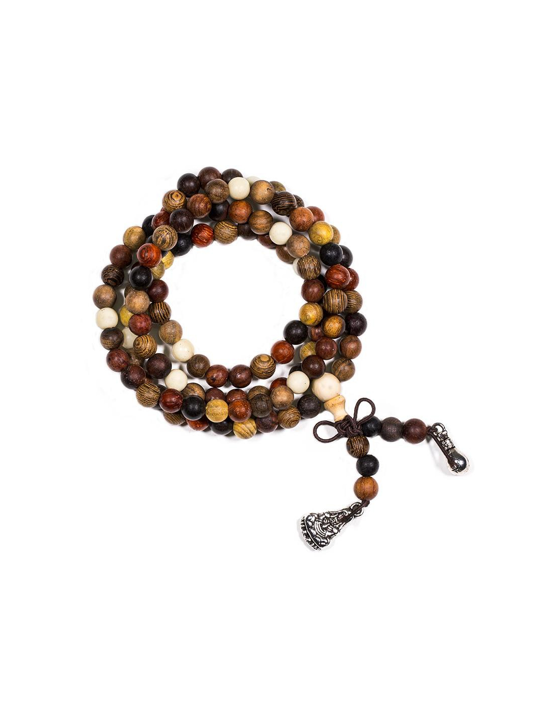 Die Perlenschnur wird hauptsächlich zum Zählen der rezitierten Mantras verwendet. Es hat also eigentlich die gleiche Funktion wie ein Rosenkranz (katholischer Rosenkranz). Diese Mala-Perlen werden aus vier Holzarten hergestellt und eignen sich für viele Zwecke, um alle Arten von Mantras oder anderen Gebeten zu zählen.