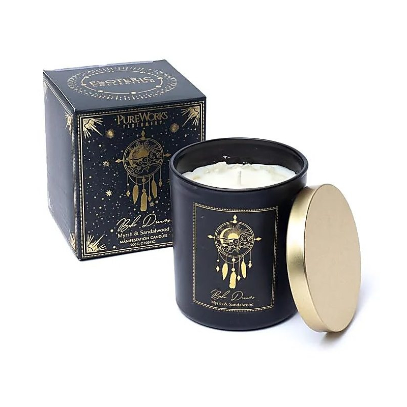 Boho Dreams Manifestationskerze im Glas mit deckel (50 Stunden)