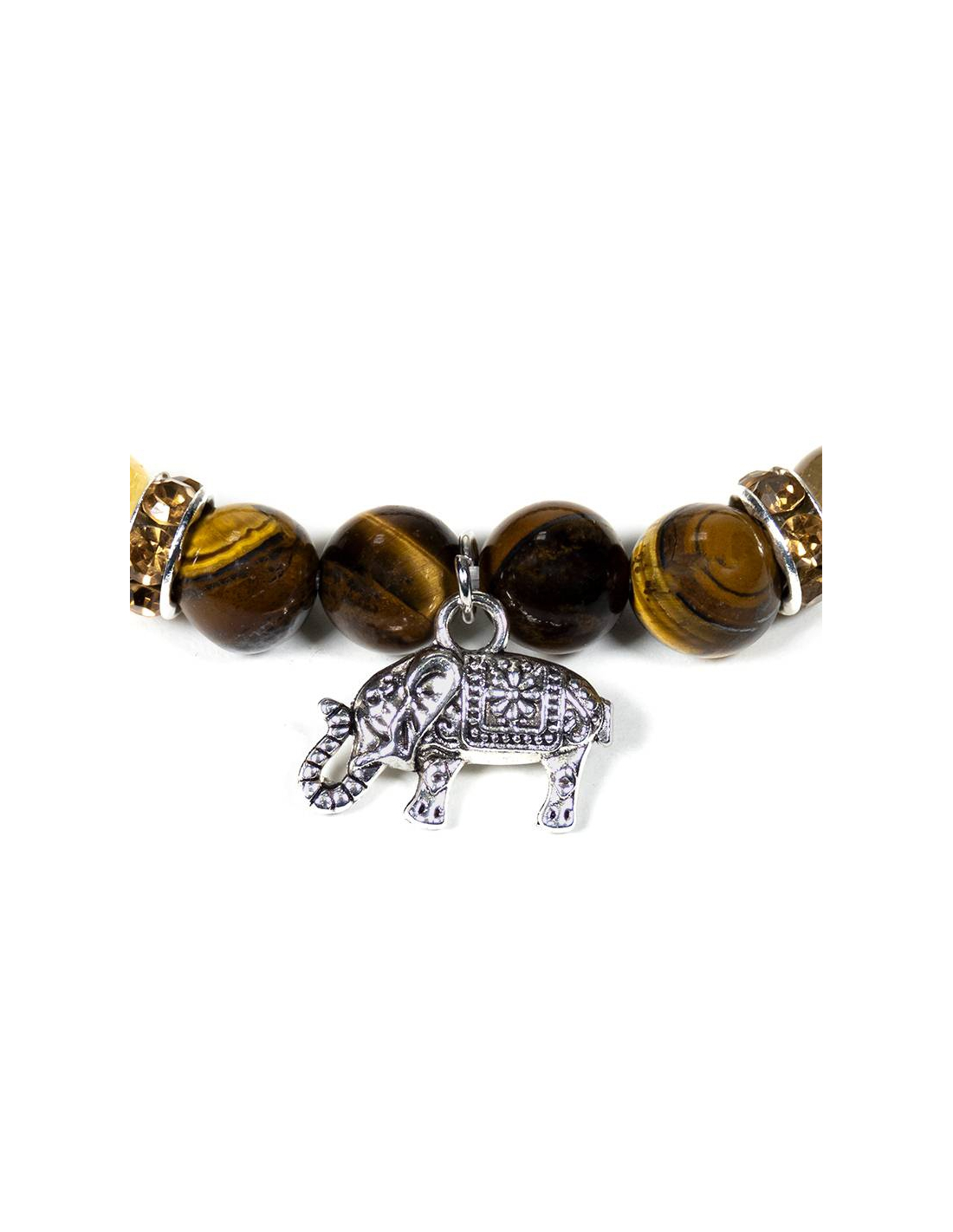 Ein wunderschönes Armband mit Tigerauge und Rutilquarz und einem Elefantenzauber.