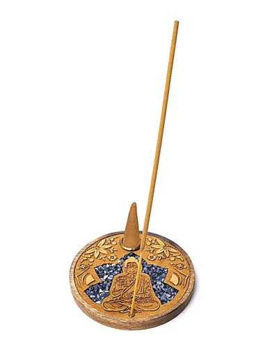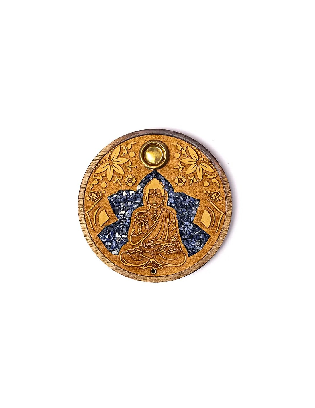 Dieser wunderschöne Räucherstäbchenhalter eignet sich zum Abbrennen von Räucherstäbchen und Räucherkegeln. In der Mitte des Halters ist ein Buddha mit Sodalithsteinen eingraviert. Der Sodalith ist der Stein der Intuition und des inneren Friedens.