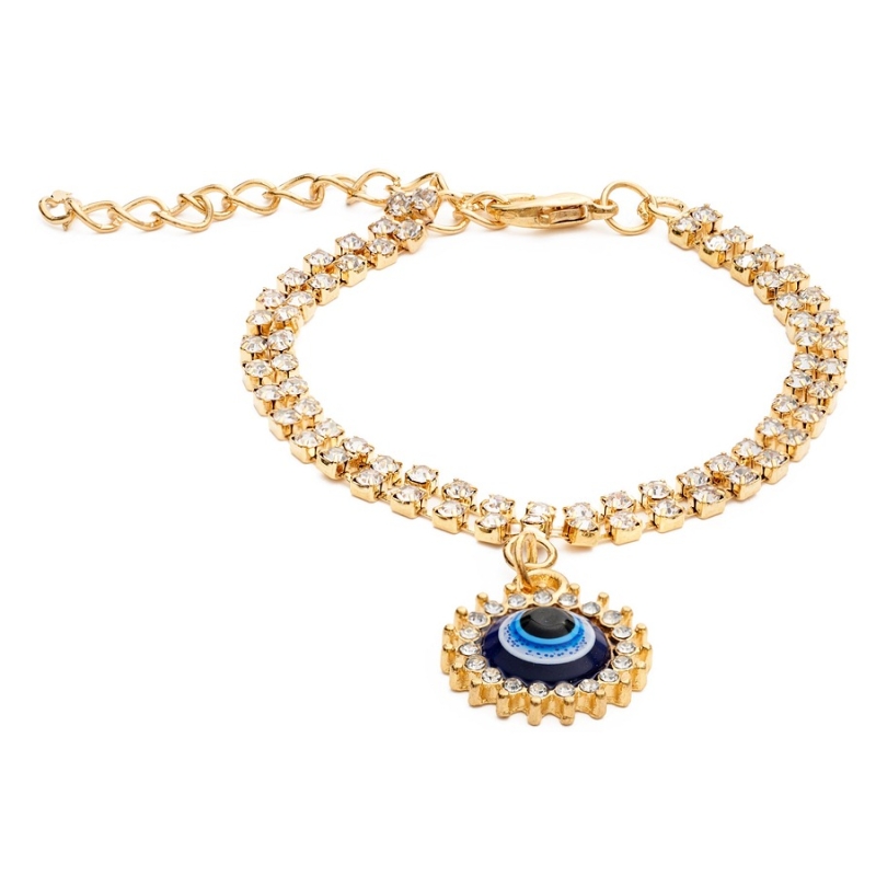 Farbe: goldfarbenes Armband mit blauem Auge und Strasssteinen