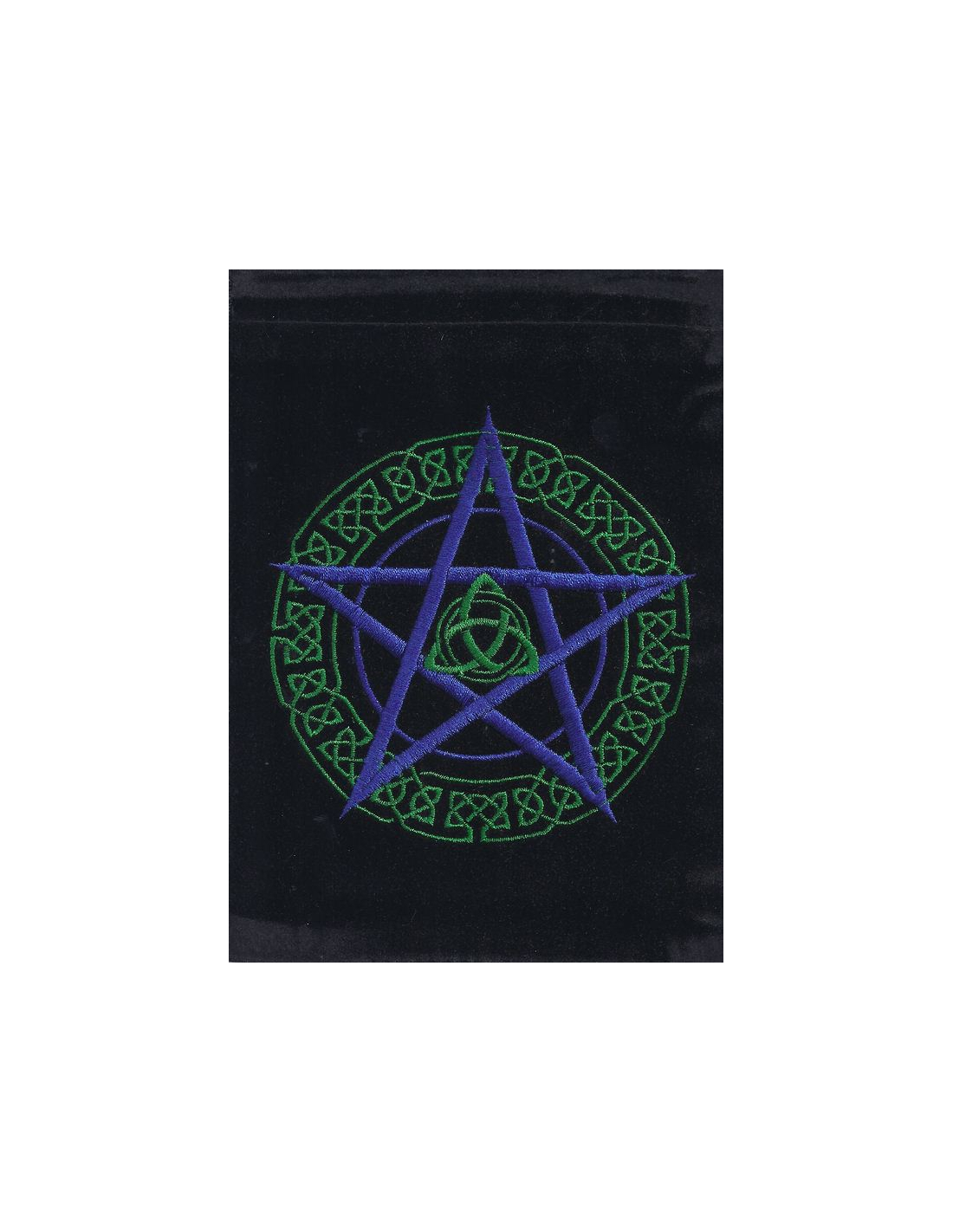 Ein Tarotbeutel aus Samt zum Schutz Ihrer wertvollen Tarot- und Orakelkarten. Mit dem Pentagramm mit dem Triquetra-Symbol vorne.