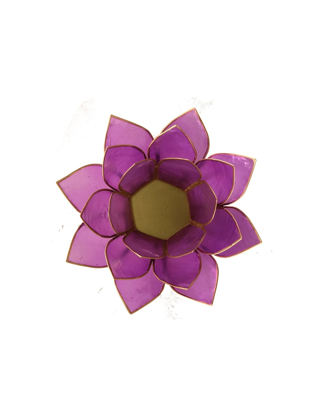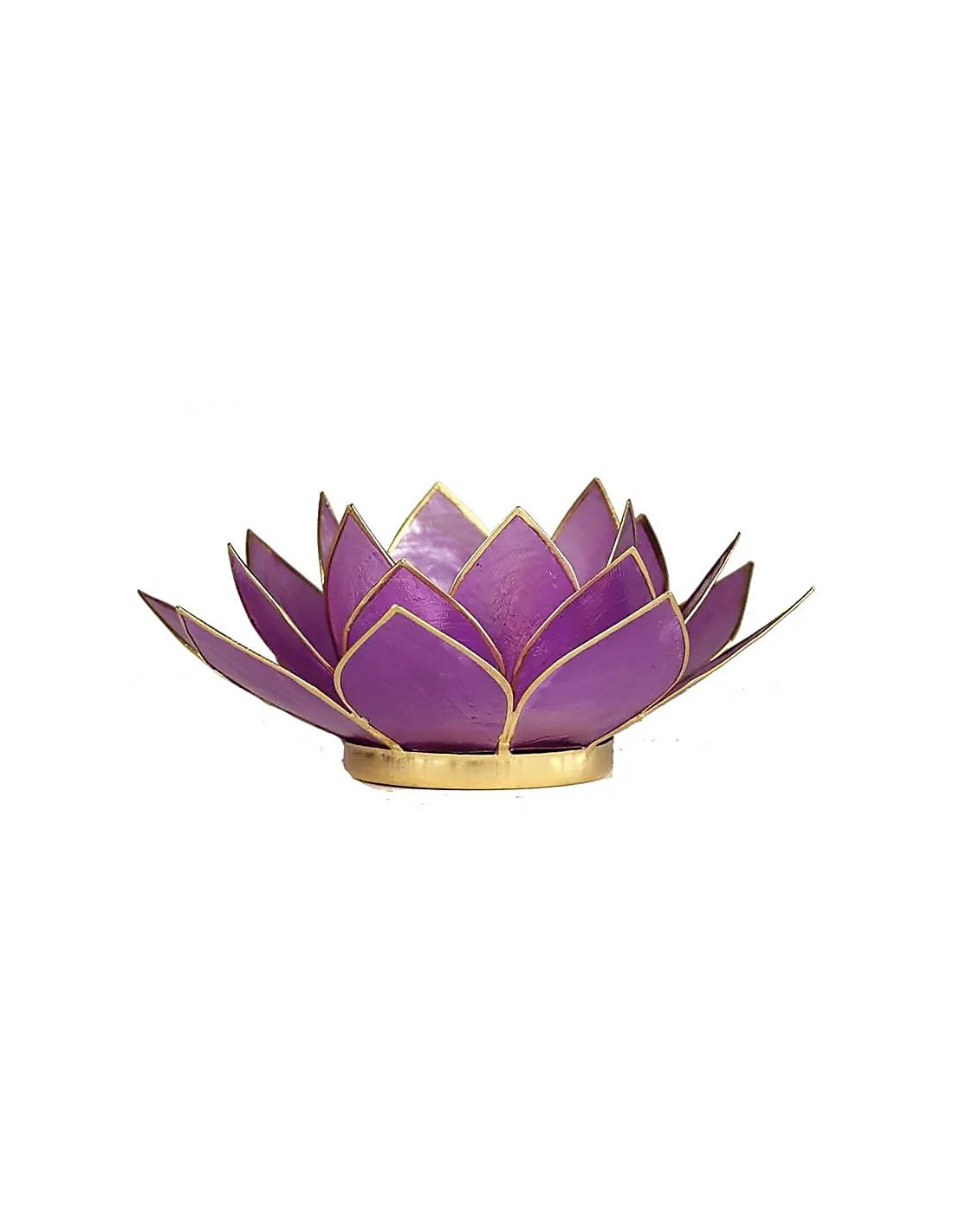Wunderschönes Teelicht in Form einer Lotusblume aus lilafarbener Capiz-Muschel. Die Lotusblume symbolisiert den Übergang von der Dunkelheit zum Licht, von Unwissenheit zu Erkenntnis. Sie steht auch für die sieben Chakren, die Energiezentren des menschlichen Körpers. Jedes Chakra repräsentiert einen Aspekt des körperlichen, emotionalen und spirituellen Bewusstseins. Wie eine Lotusblume, die sich Schicht für Schicht öffnet, laden die Chakren zu innerem Gleichgewicht, Wachstum und Selbsterkenntnis ein. Die Lotusblume ist daher ein zeitloses Symbol für Transformation, Reinheit und innere Stärke.