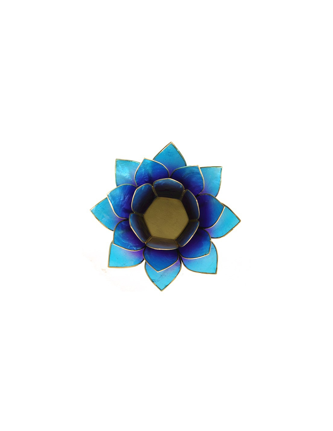 Wunderschönes großes Lotus-Stimmungslicht aus Capiz-Muscheln in den Farben Violett und Blau. Der Lotus ist das Symbol der Dunkelheit für das Licht, von der Unwissenheit bis zur Erkenntnis. Der Lotus symbolisiert auch die 7 Energiezentren im menschlichen Körper, die Chakren.