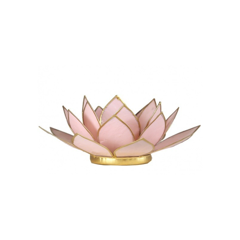 Wunderschönes großes Lotus-Stimmungslicht aus Capiz-Muschel in der Farbe Pastellrosa. Der Lotus ist das Symbol der Dunkelheit für das Licht, von der Unwissenheit bis zur Erkenntnis. Der Lotus symbolisiert auch die 7 Energiezentren im menschlichen Körper, die Chakren.