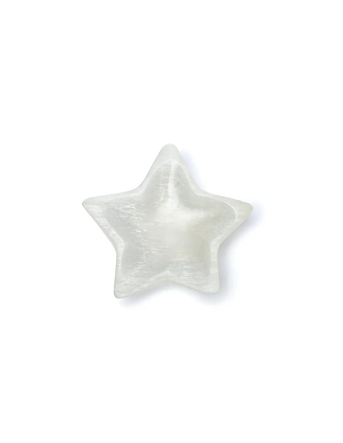 Preserve your gemstones and jewelry in a unique way with this star-shaped selenite bowl. Selenite is known for its purifying energy and is often used to cleanse and charge other crystals. Let this elegant bowl be a radiant space for your precious items and surround yourself with the gentle, healing energy of selenite.