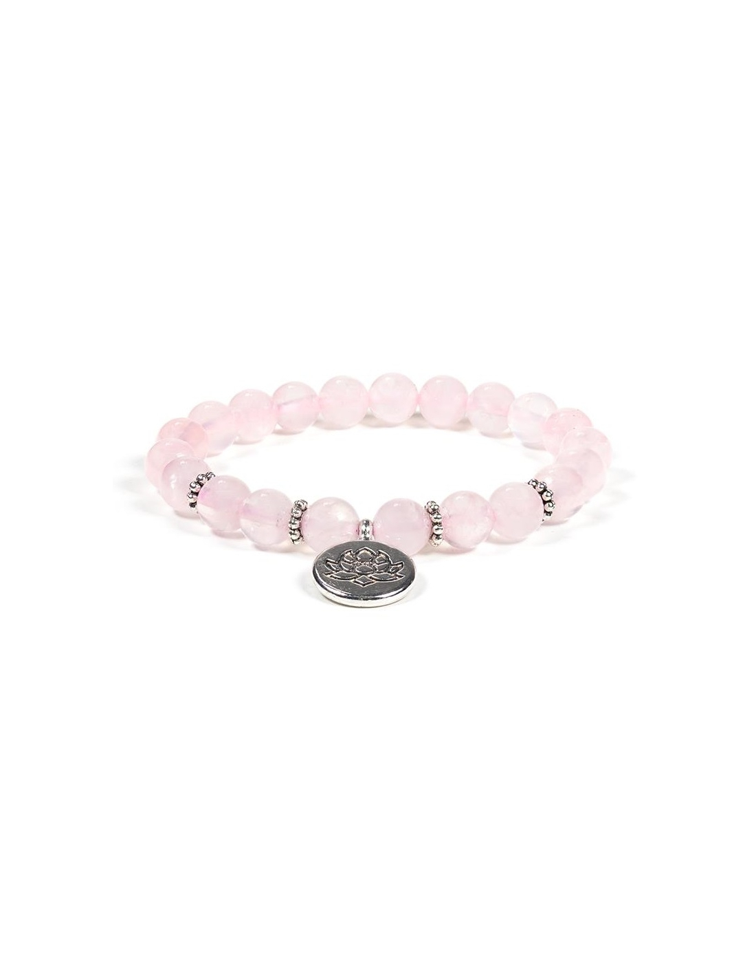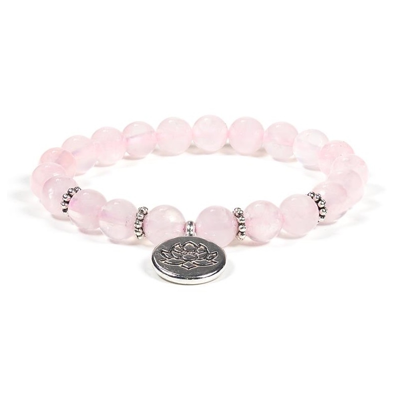 A beautiful bracelet with rose quartz and a lotus charm. Dimensions bracelet: 18.5cm