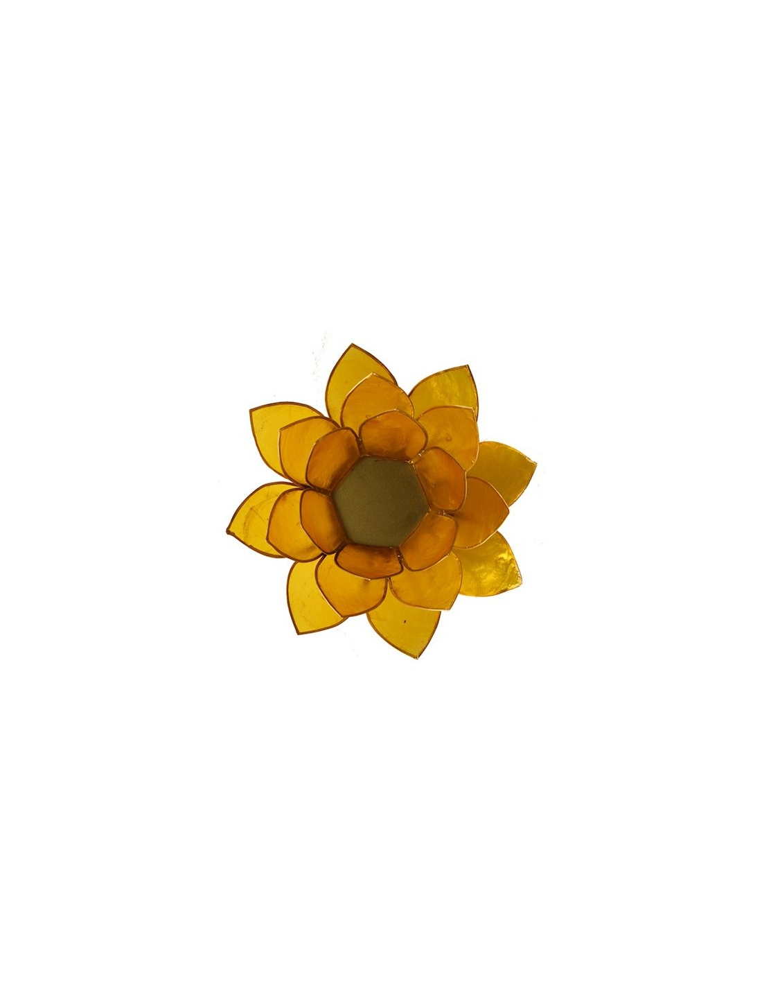 Beautiful large Lotus mood light made of Capiz shell in the color Citrine yellow. The Lotus is the symbol of darkness to light, from ignorance to knowledge. The lotus also symbolizes the 7 energy centers in the human body, the chakras.