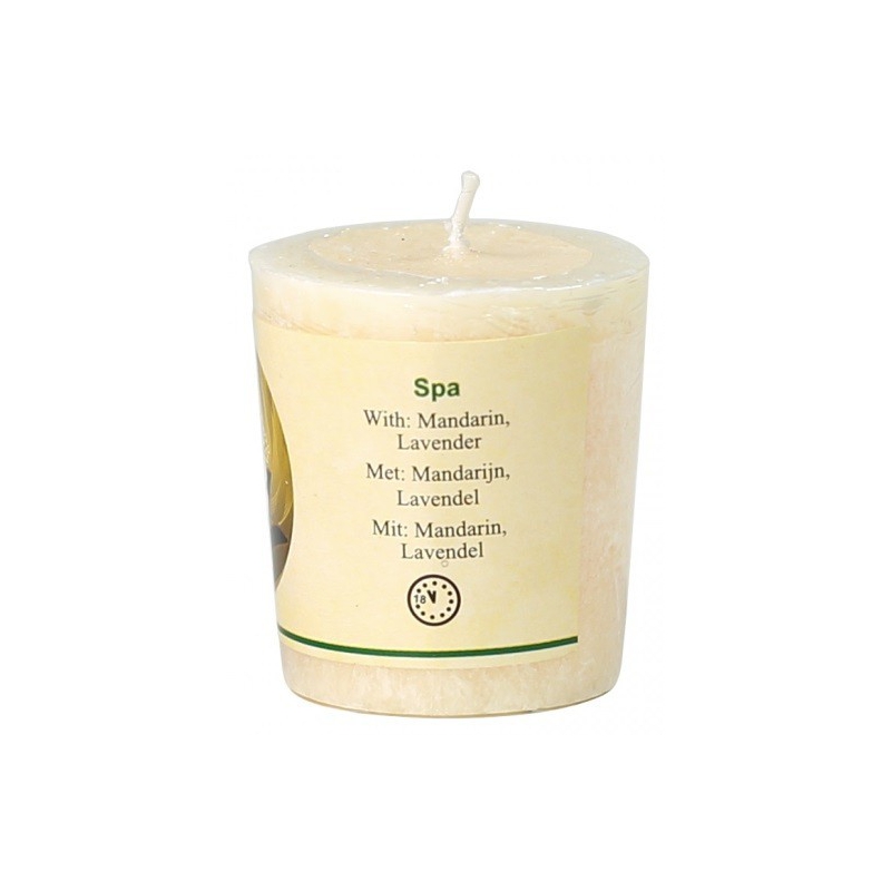 Stearine scented candle with essential oils: Mandarin and Lavender.