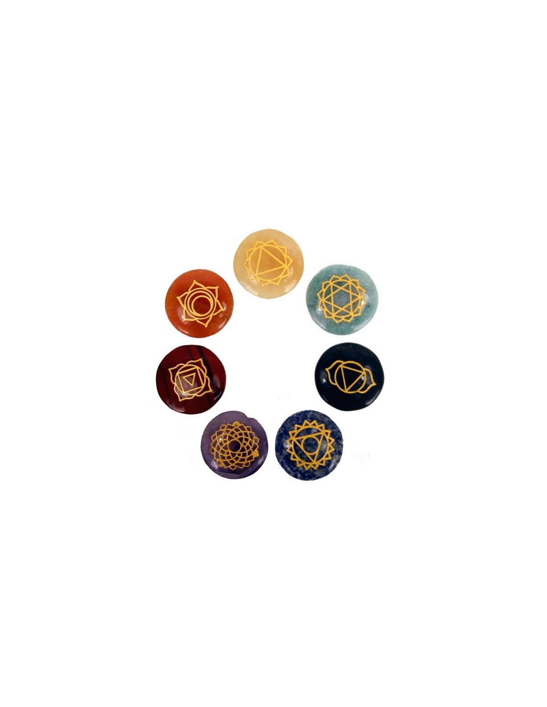 Discover our enchanting set of 7 chakra symbol mineral stones, a beautifully curated package that is perfect for anyone wishing to connect with the power of the chakras and energetic healing. Each stone in this special collection is engraved round with the symbol of the corresponding chakra, allowing you to benefit not only from the healing properties of the minerals but also from the symbolic power they radiate.