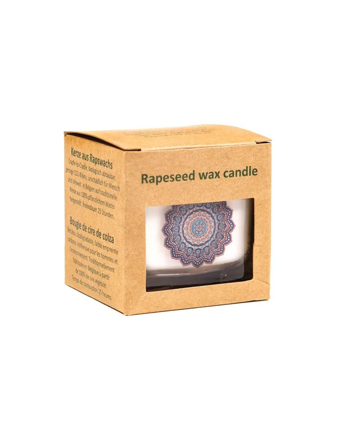 Scented candle of 100% vegetable ecological rapeseed wax in recycled glass. The candle is made in the traditional way in Belgium, with paraben-free fragrance oils. Biodegradable and therefore harmless to people and the environment.
