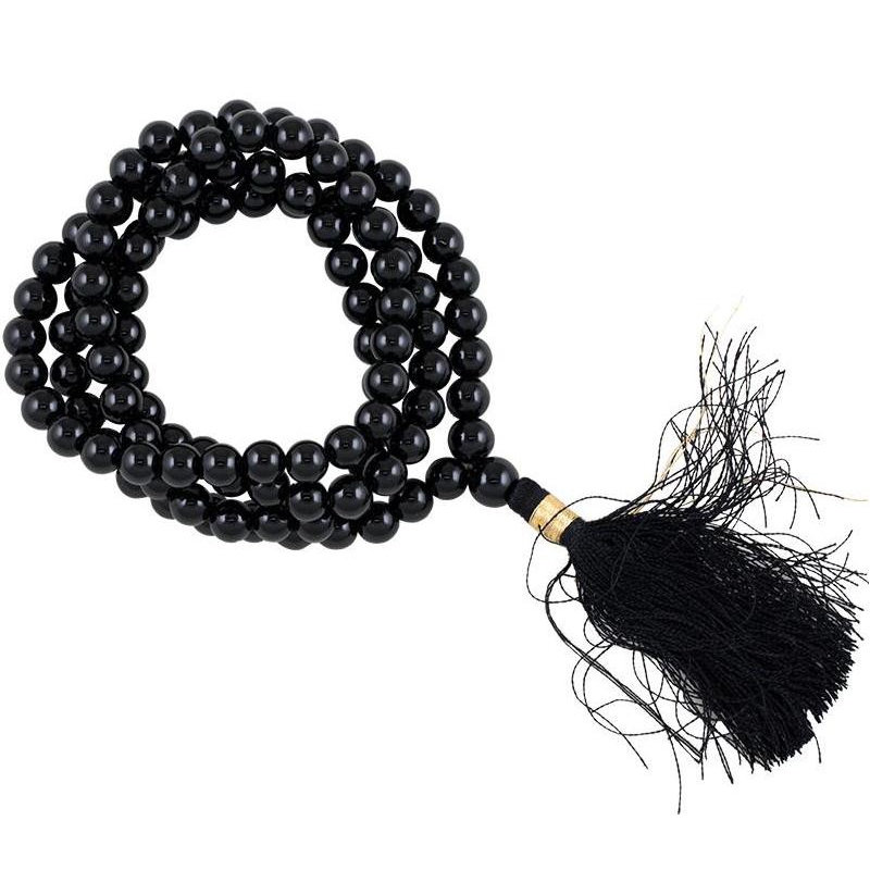The beaded string is mainly used to count mantras that are recited. So it actually has the same function as a rosary (Catholic rosary). These mala beads are made from Onyx black (semi) precious stones and are suitable for many purposes, for counting all kinds of mantras or other prayers, bows, tours and the like.