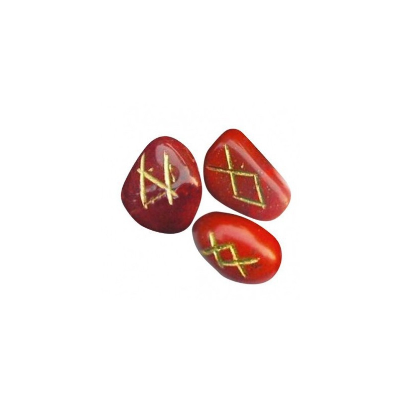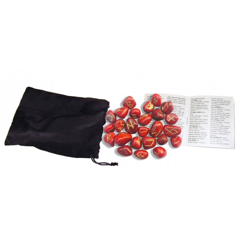 Rune stones of Red Jasper in pouch of velours with engraved runic symbols (25 pieces) and an instruction booklet. A refined article to give to others or to themselves.