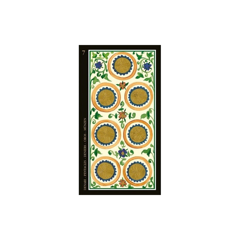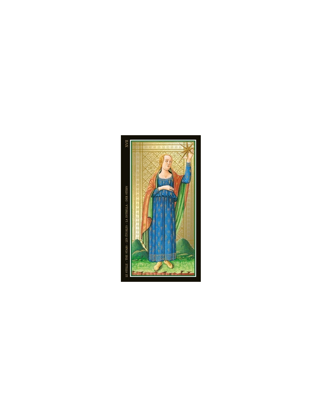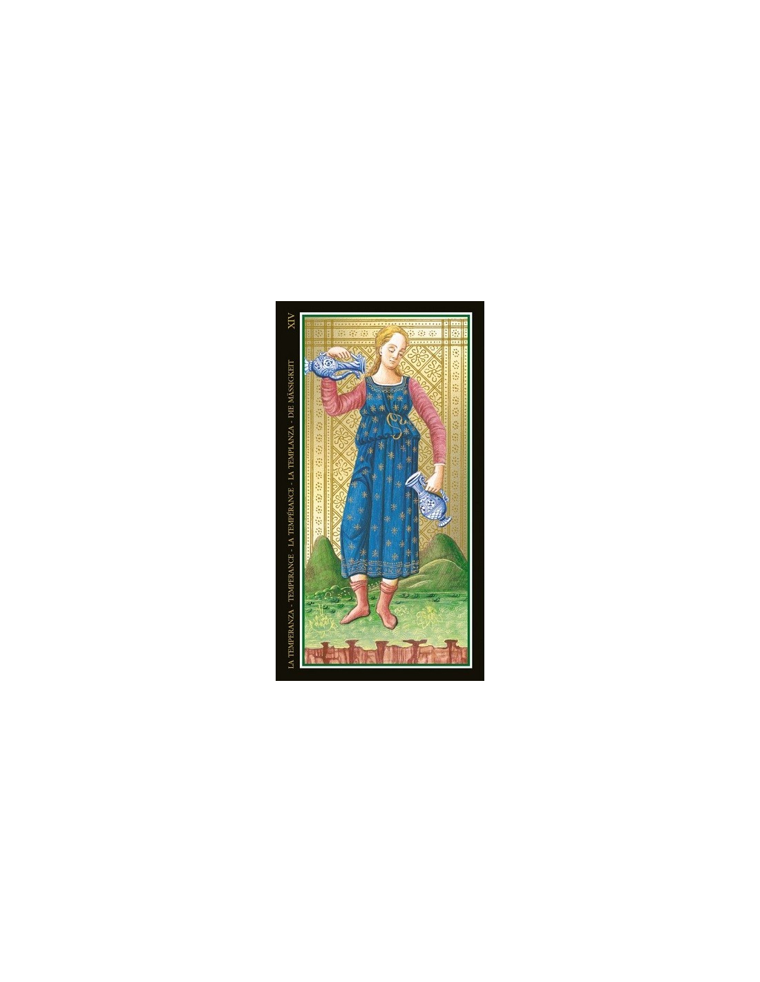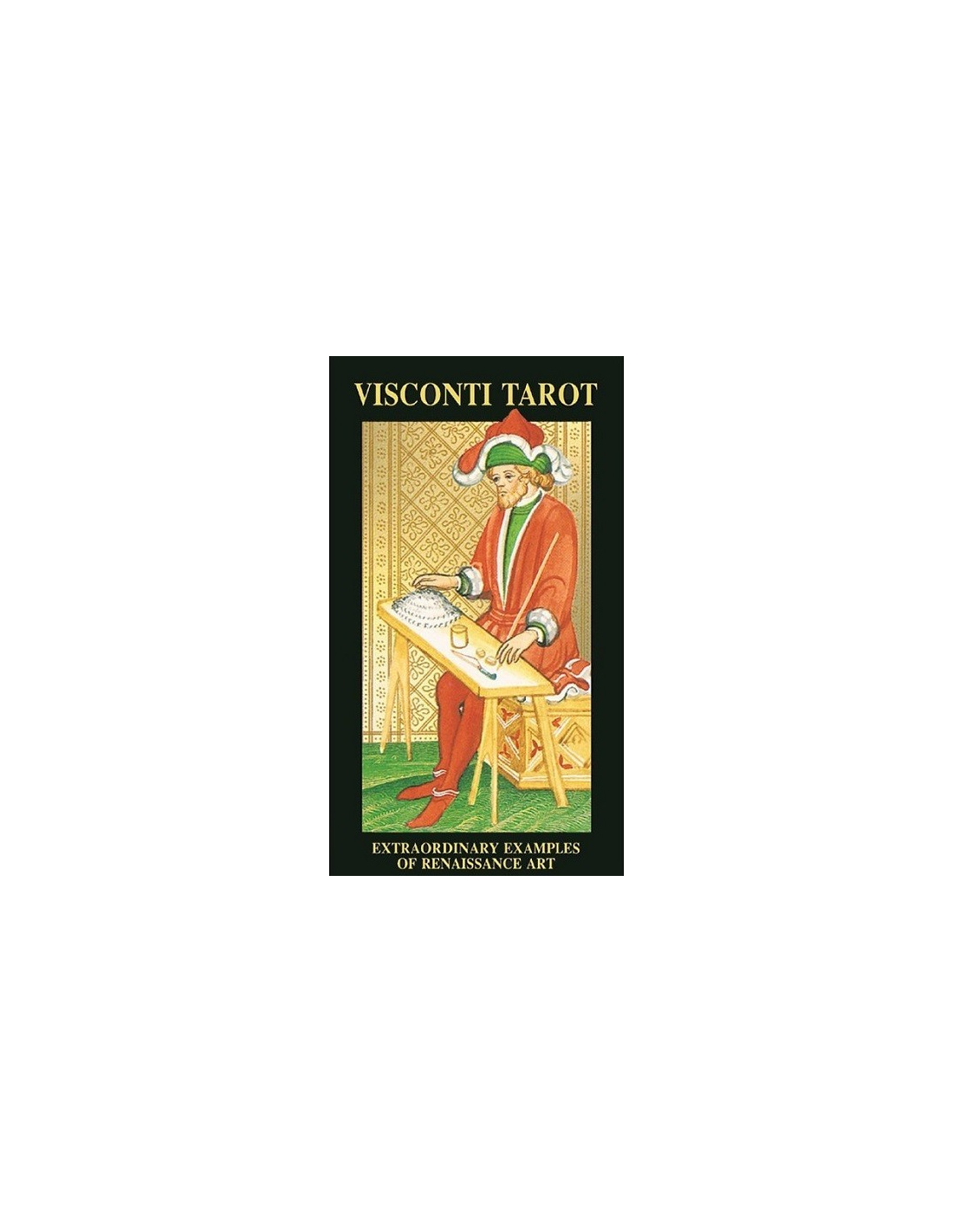 One of the oldest Tarot decks that has been preserved to date and perhaps the most beautiful of all. These cards are generally recognized as one of the most extraordinary examples of miniature art and renaissance symbolism. The Visconti Tarot has been restored for the first time and printed with gold to improve the original splendor.