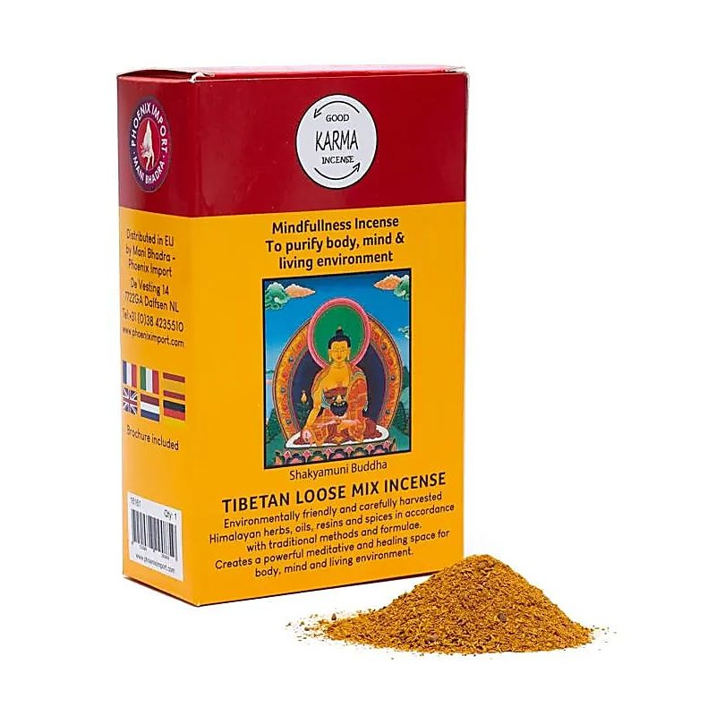 A high-quality Tibetan incense powder that reflects the enlightened energy of Shakyamuni Buddha, promotes mindfulness and presence. It helps create a calm, focused atmosphere during meditation.