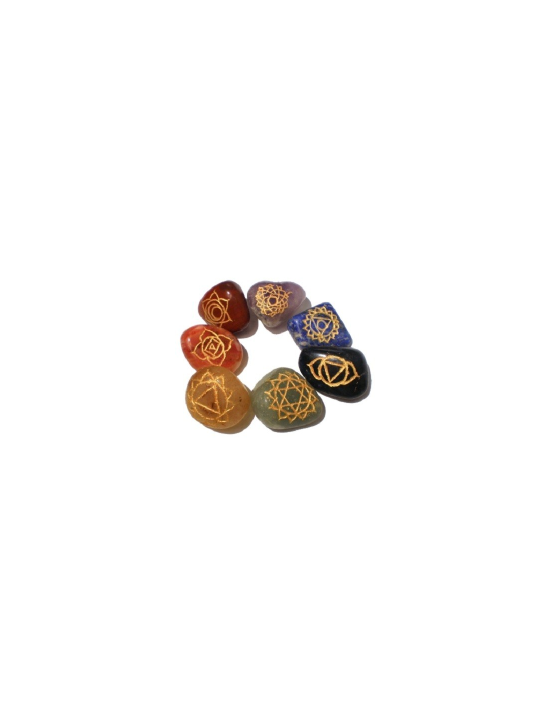 7 pierres roulées des chakras avec symboles des chakras 16577