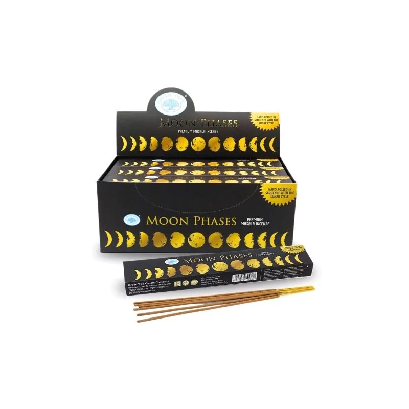 Brûlez ce délicieux encens et accordez-vous au rythme de la lune. Chaque phase, de la nouvelle à la pleine lune, et inversement, véhicule une énergie unique : du lâcher-prise à la réception, du calme à la croissance.