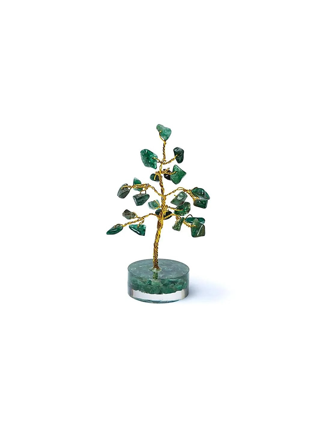 Un bel arbre à pierres précieuses fait main avec des feuilles d'aventurine verte, pour décorer un espace avec le pouvoir de guérison des pierres précieuses. L'aventurine verte est la pierre de la prospérité et du bonheur.