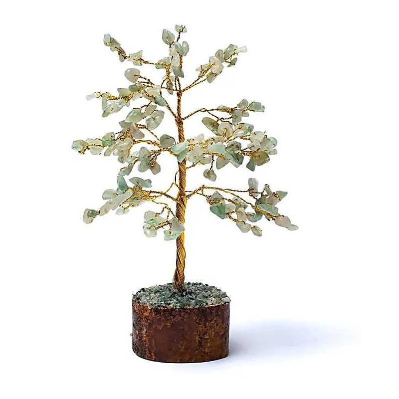 Un bel arbre à pierres précieuses avec des feuilles d'aventurine verte pour décorer une pièce avec les pouvoirs curatifs des pierres précieuses. Ces œuvres d’art sont conçues pour rayonner de grâce et de beauté et sont souvent utilisées dans le feng shui car elles confèrent une énergie positive et une protection.