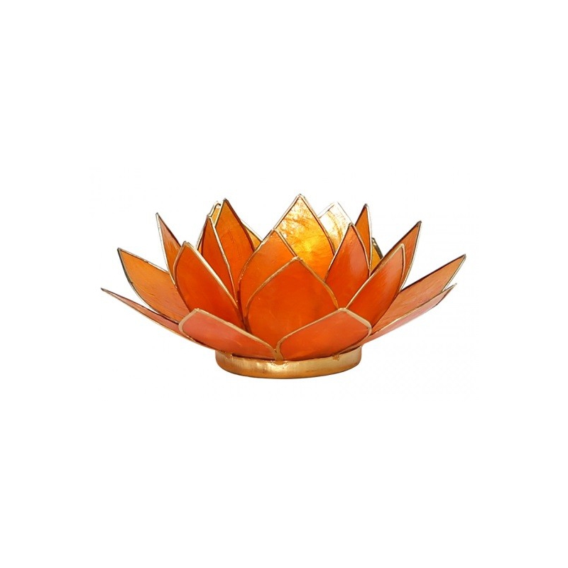 Belle et grande lumière d'ambiance Lotus en coquille Capiz de couleur orange ambre. Le Lotus est le symbole des ténèbres à la lumière, de l'ignorance à la connaissance. Le lotus symbolise également les 7 centres d'énergie du corps humain, les chakras.