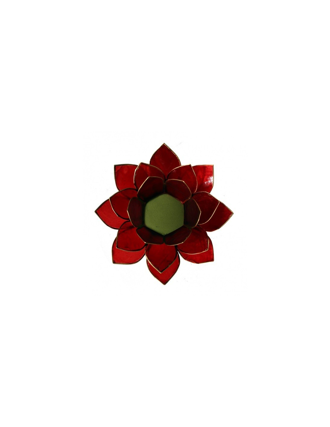 Belle et grande lumière d'ambiance Lotus en capiz de couleur rouge rubis. Le Lotus est le symbole des ténèbres à la lumière, de l'ignorance à la connaissance. Le lotus symbolise également les 7 centres d'énergie du corps humain, les chakras.