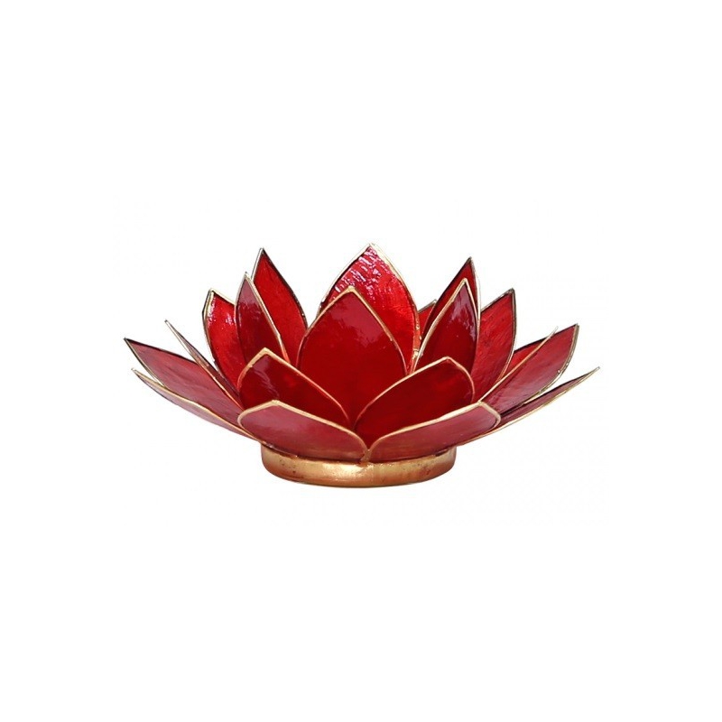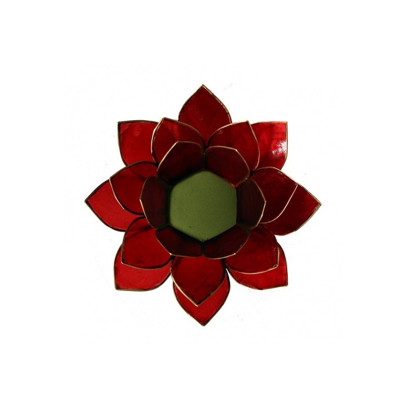 Belle et grande lumière d'ambiance Lotus en capiz de couleur rouge rubis. Le Lotus est le symbole des ténèbres à la lumière, de l'ignorance à la connaissance. Le lotus symbolise également les 7 centres d'énergie du corps humain, les chakras.
