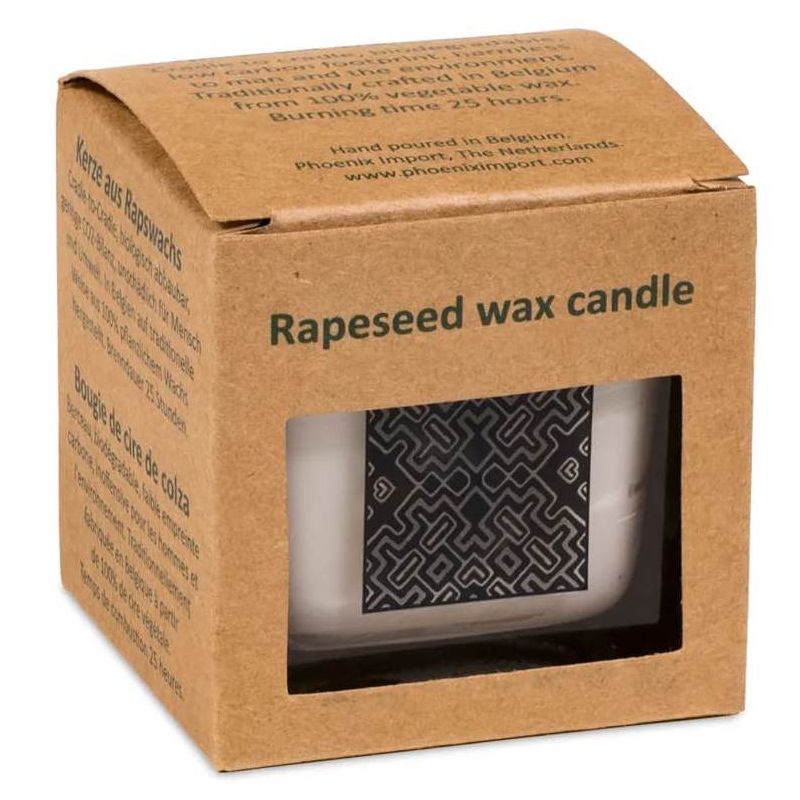 Bougie parfumée à base de cire de colza 100% écologique et végétale en verre recyclé. La bougie est fabriquée de manière traditionnelle en Belgique, avec des huiles parfumées sans paraben. Biodégradable et donc inoffensif pour l'homme et l'environnement.
