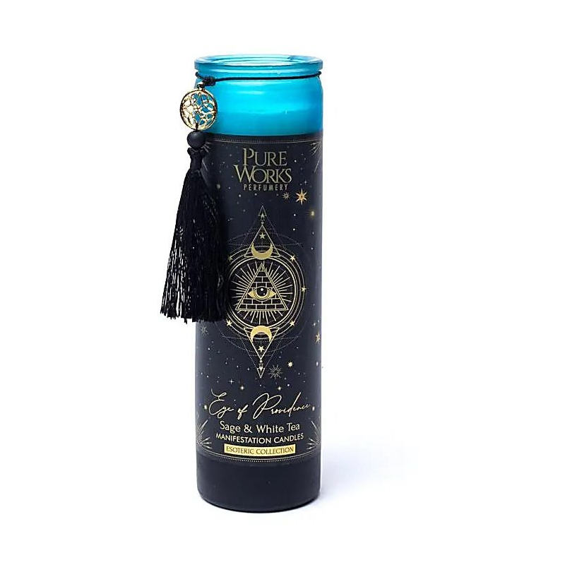 Bougie de manifestation Eye of Providence en verre avec pompon (80 heures)