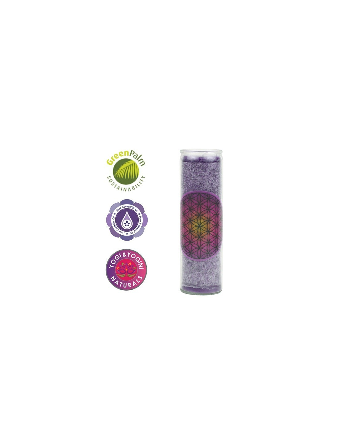 Bougie parfumée en verre avec une très longue durée de combustion de 100 heures avec 3% d'huiles essentielles: lavande, mandarine et vanille