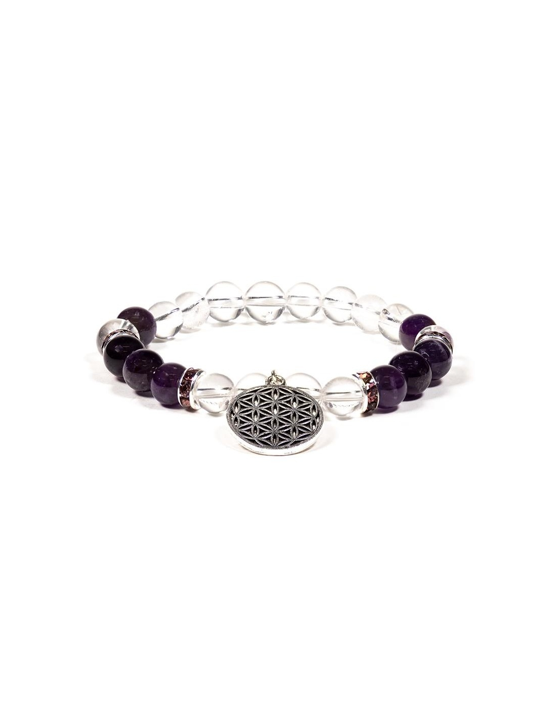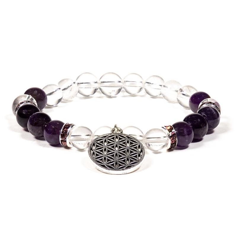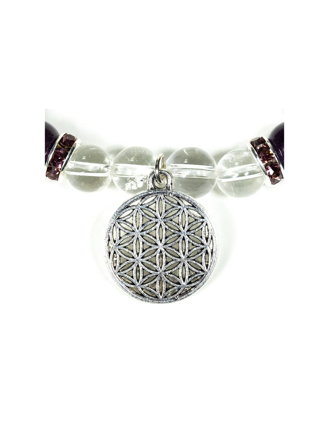 Bracelet cristal de roche et améthyste avec fleur de vie 8mm