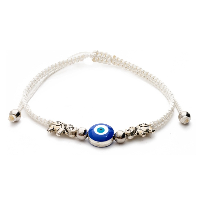 Bracelet Evil eye avec éléphants blanc
