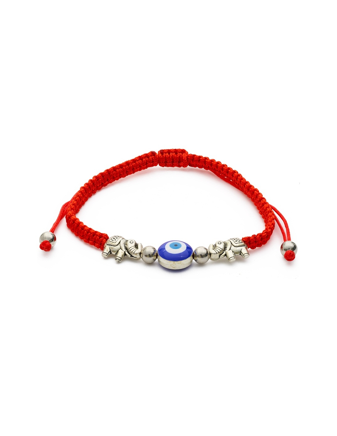 Couleur: bracelet corde rouge avec oeil bleu et éléphants argentés