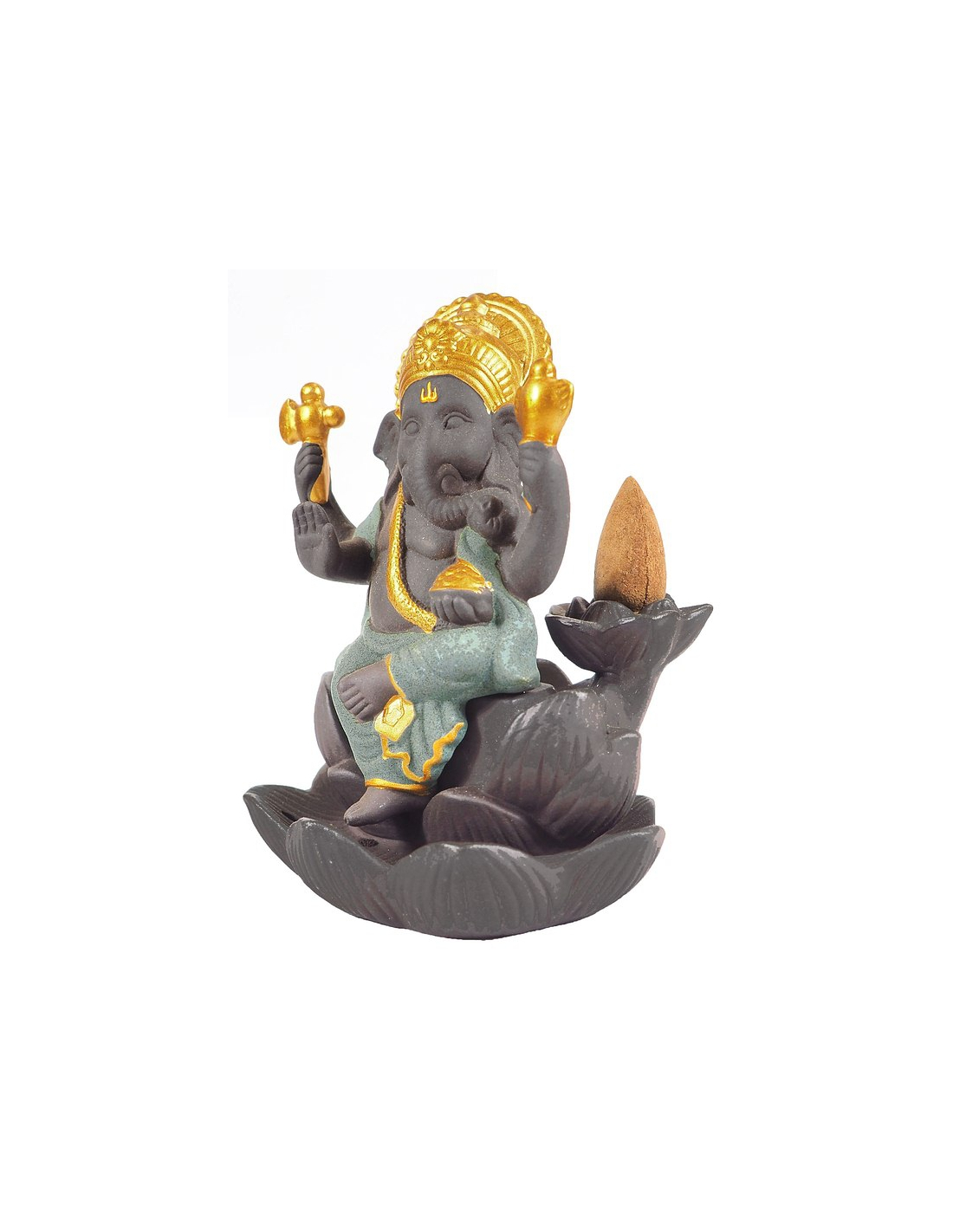 Brûleur d'encens flux de retour Ganesha (or/vert)