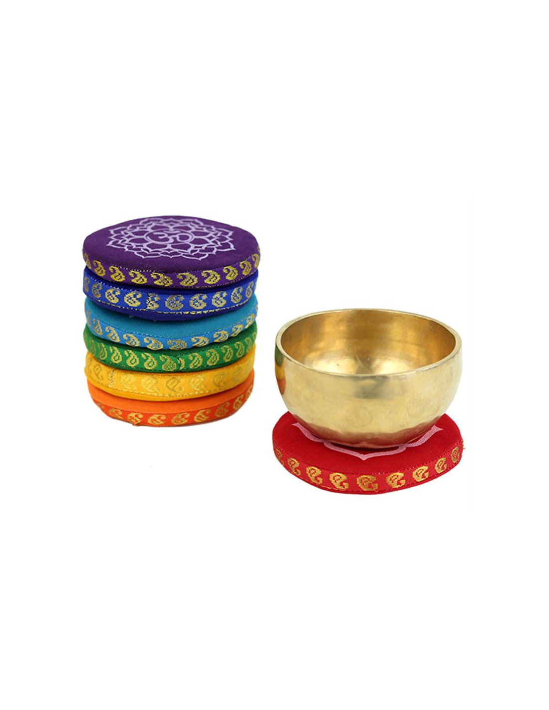 Ces coussins de bols chantants en polyester colorés sont très adaptés pour être placés sous des bols chantants. Cela évite les bruits indésirables et dérangeants lorsque le bol chantant est frappé ou frappé. Le son lui-même n'est pas affecté par les coussins. Les coussins des bols chantants évitent d'endommager la surface et les bols chantants.