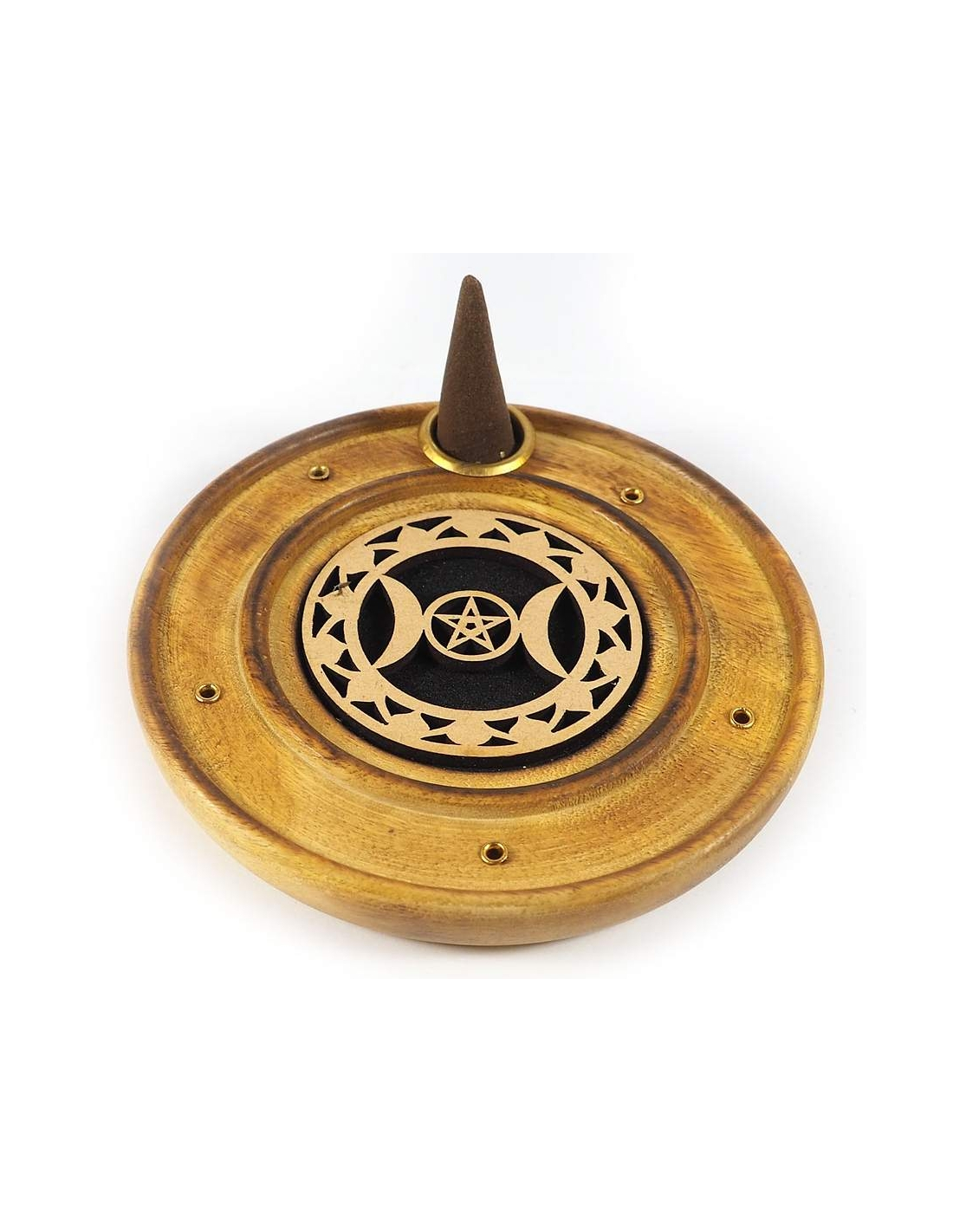 Cette belle planche d'encens convient à la combustion d'encens et de cônes d'encens indiens et tibétains. La Triple Moon est gravée au centre de l'étagère.