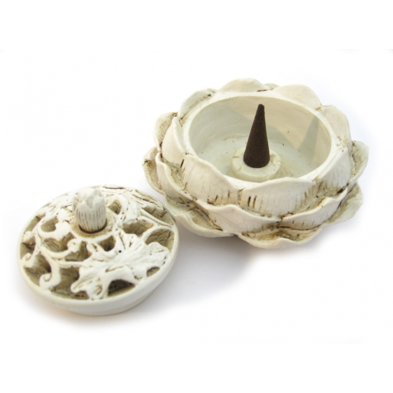 Un magnifique porte-encens en forme de lotus. Ce porte-encens convient pour brûler des bâtons d'encens et des cônes d'encens.