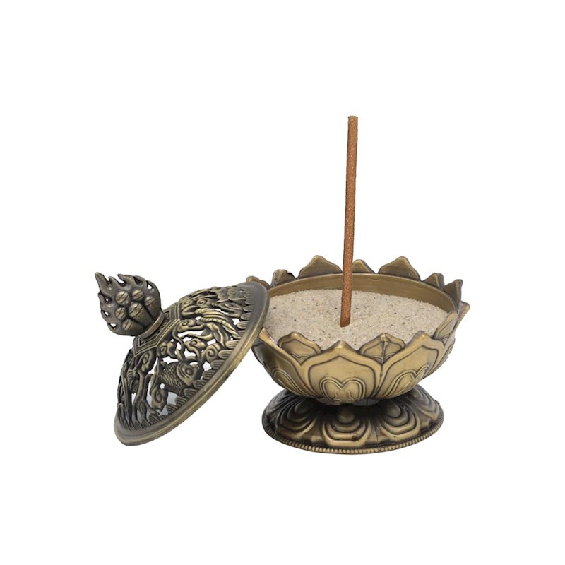 Brûle encens Lotus couleur bronze 6.9cm