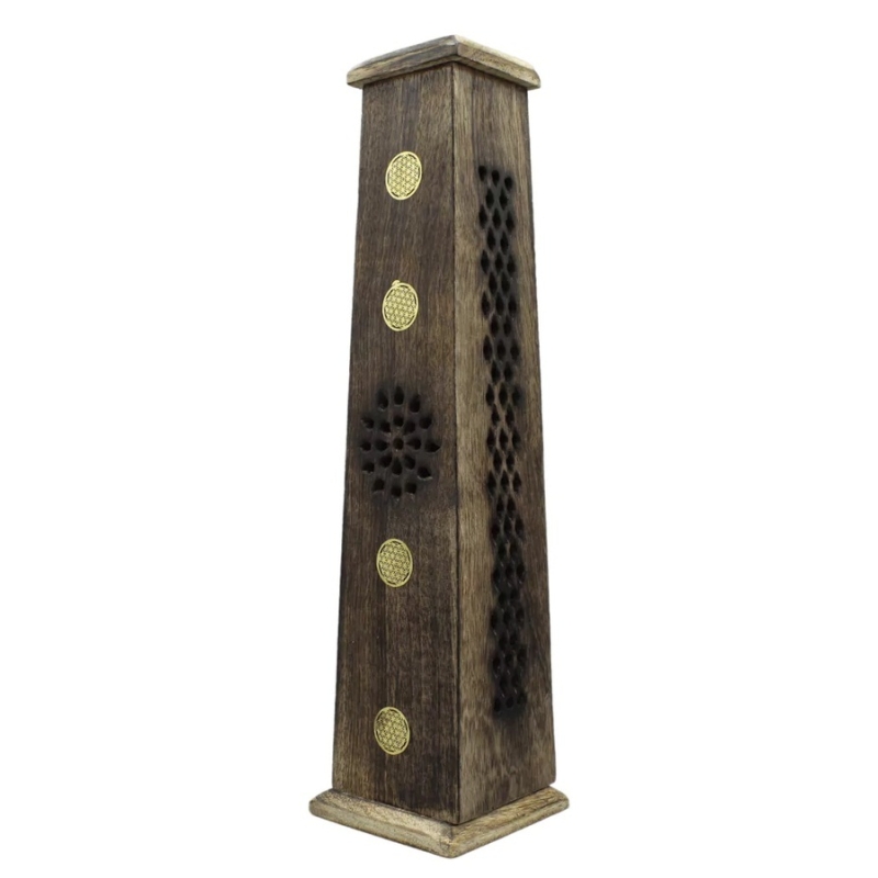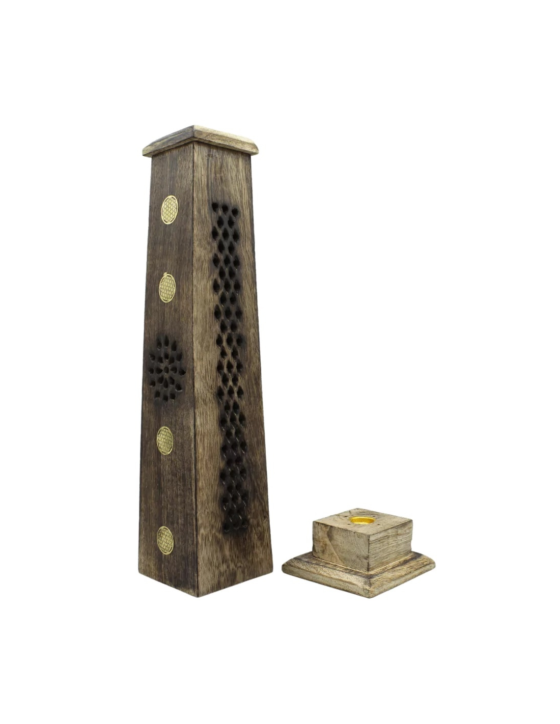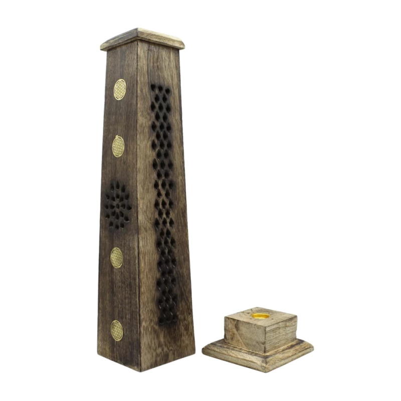 Porte-encens Sculpture sur Bois avec décor de fleurs