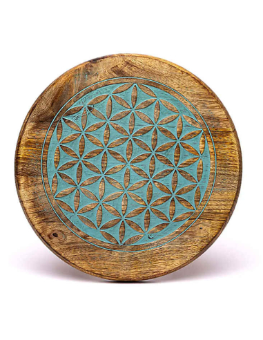 Table d'appoint en bois de manguier Fleur de Vie bleu