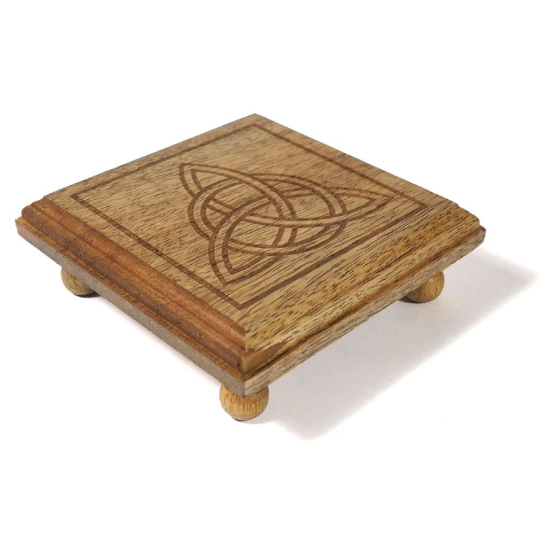Een prachtig handgemaakte altaar tafel met een in het mangohout gegraveerd triquetra symbool. Gebruik deze mini altaar tafel voor rituelen, ceremonies of als tafeltje voor je kristallen.