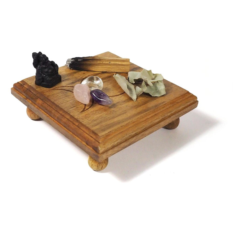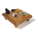 Een prachtig handgemaakte altaar tafel met een in het mangohout gegraveerd drievoudige maan symbool. Gebruik deze mini altaar tafel voor rituelen, ceremonies of als tafeltje voor je kristallen.