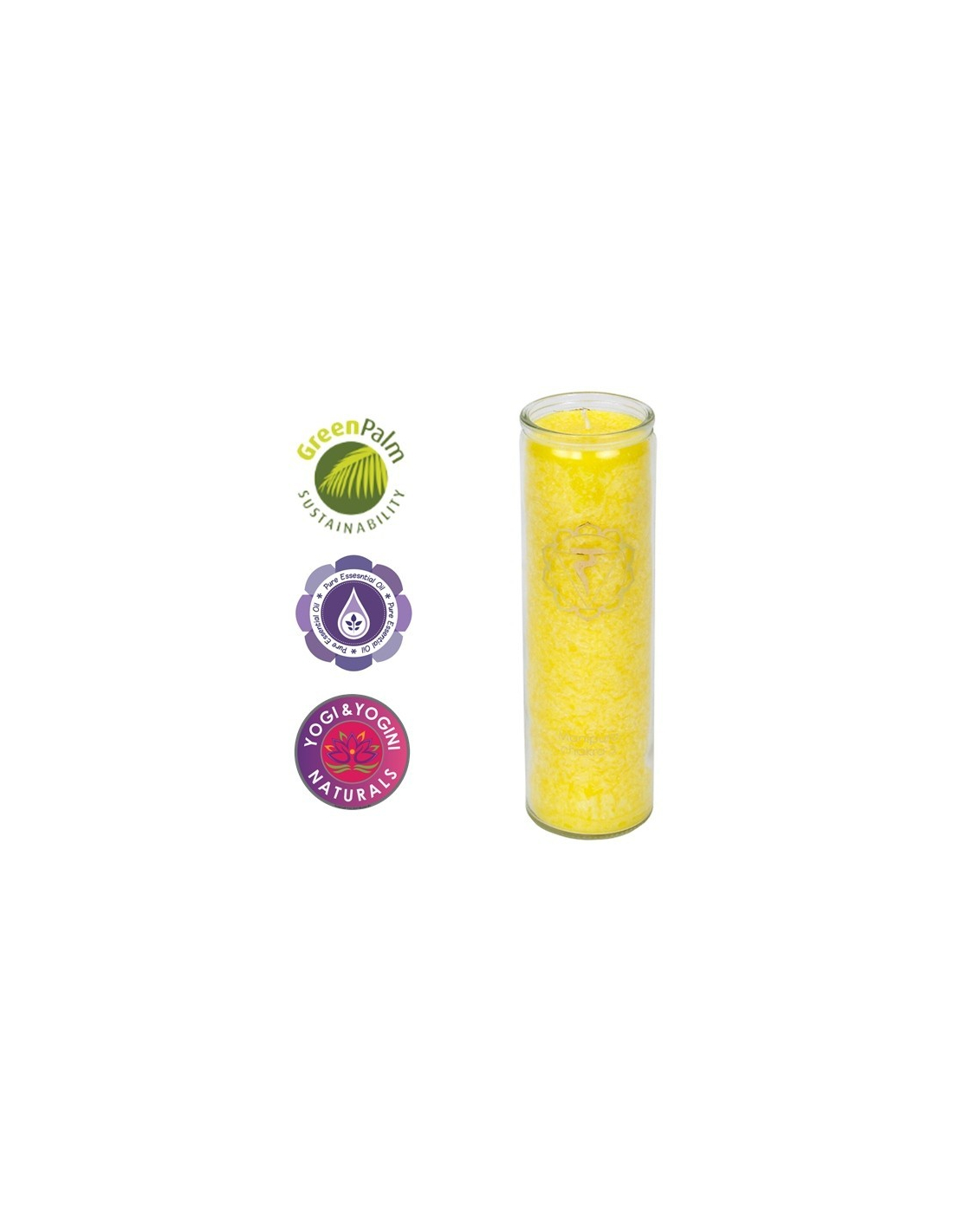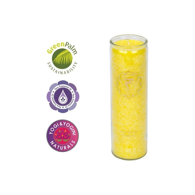 De naam van deze chakra vanuit het Sanskriet is Manipura. Deze kaars is verbonden aan het 3e chakra en geeft je op dat gebied balans. De 3e chakra wordt in verband gebracht met wilskracht en de metabolische energieën en is gelegen in de buurt van de Plexus Solaris (maagstreek).
