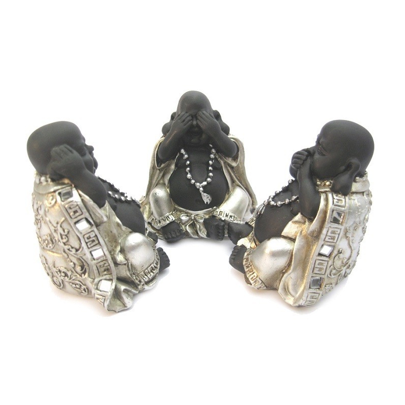 Chinese boeddha horen, zien, zwijgen - klein (zilver/zwart)