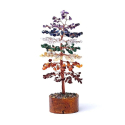 Een prachtige edelsteenboompje met blaadjes van diverse edelstelen (rode jaspis, carneool, goudkwarts, groene aventurijn, bergkristal, sodaliet en amethist), die de 7 chakra's vertegenwoordigen. Deze kunstwerken zijn ontworpen om sierlijkheid en schoonheid uit te stralen, en worden vaak gebruikt in feng shui, omdat ze positieve energie en bescherming schenken.