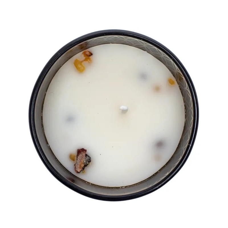 Myhrr en Frankincense met hun houtige kruidige aroma staan erom bekend de geest te verheffen. Brand deze geurkaars en laat je betoveren door de geur die vrijkomt. Het schenkt je een overvloed aan liefde, licht en positiviteit.