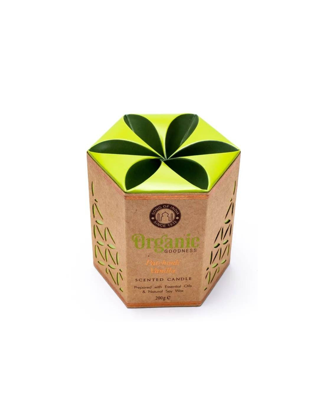Gemaakt van sojawas met etherische olie patchouli en vanille